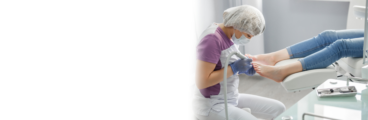 Подолог на начальном этапе проводит осмотр ног, оценивает состояние кожи, ногтевой пластины. Выявив проблемы, подбирает методы консервативной коррекции.