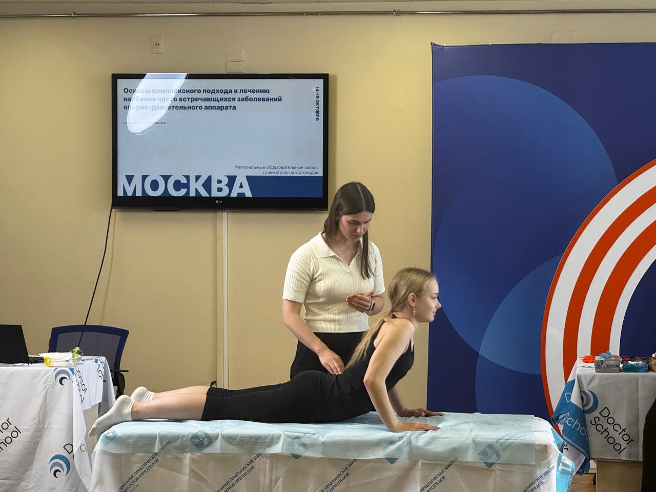 Врач по лечебной физкультуре и спортивной медицине Бекназарова Мария Петровна провела мастер-класс по коррекции и восстановлению биомеханики конечностей на тему «Алгоритм составления программы и плана реабилитации, кинезиотейпирование и средства разгрузки конечностей. Работа на модели с патологией опорно-двигательного аппарата. Аппаратная физиотерапия в травматологии и ортопедии».