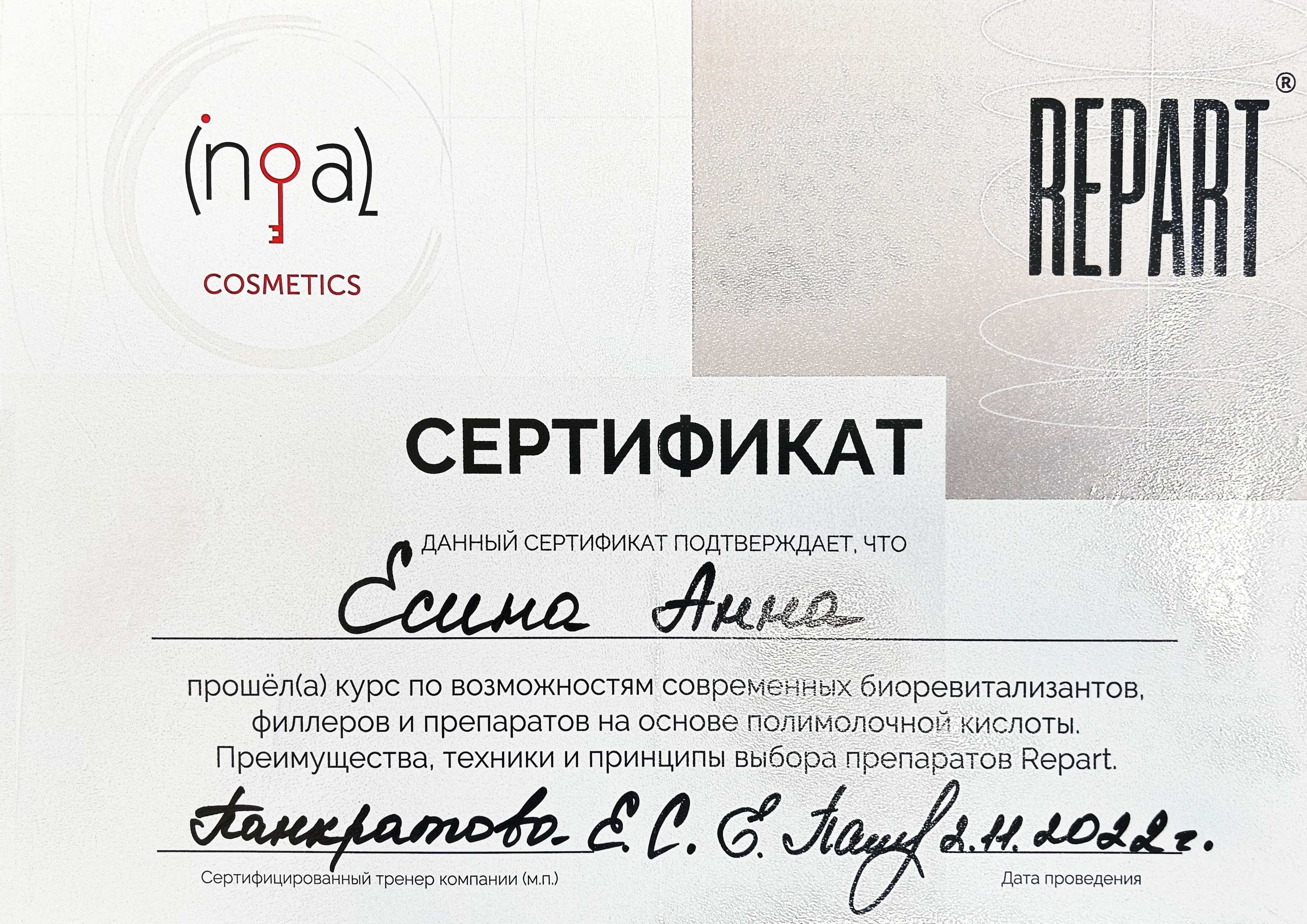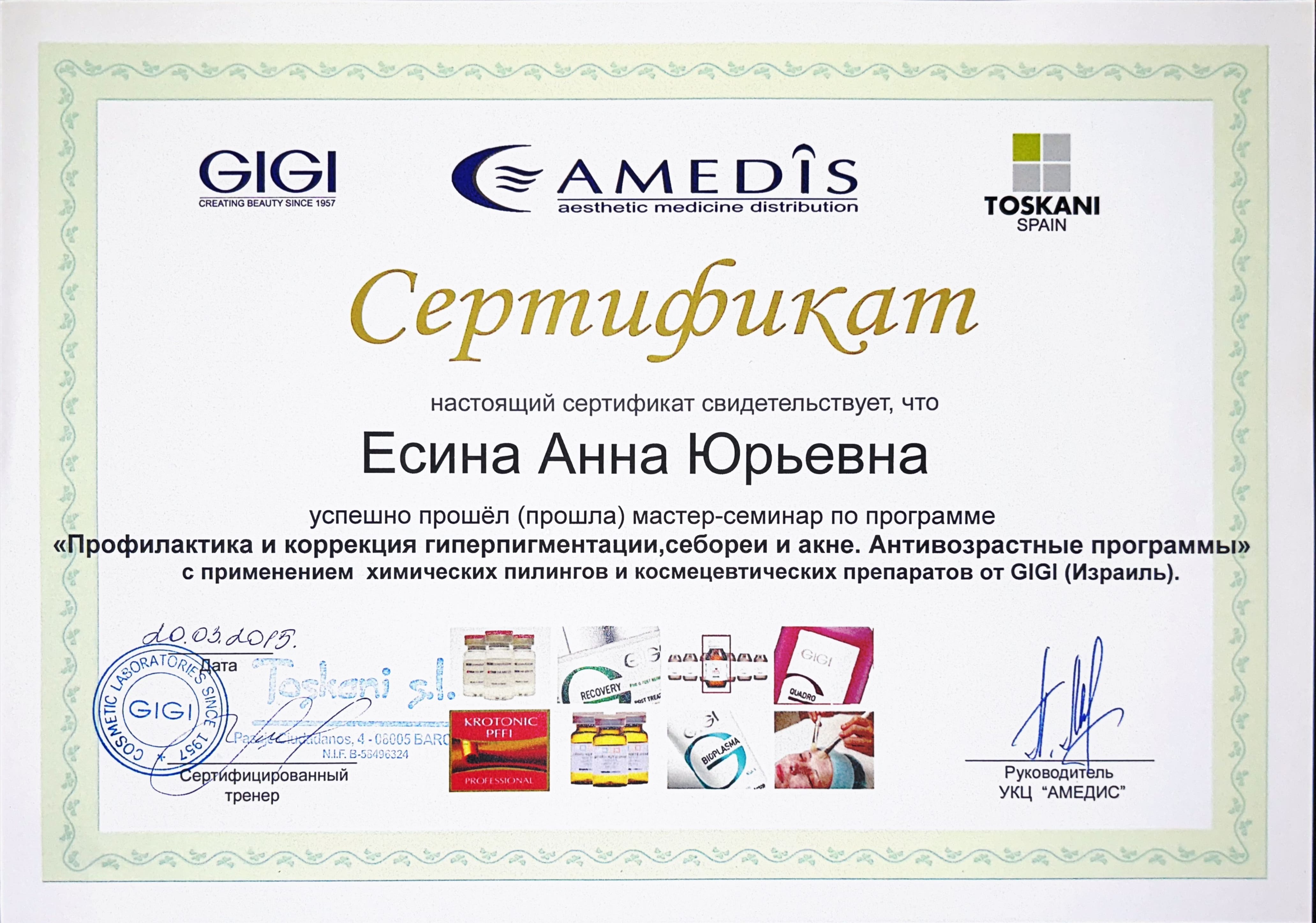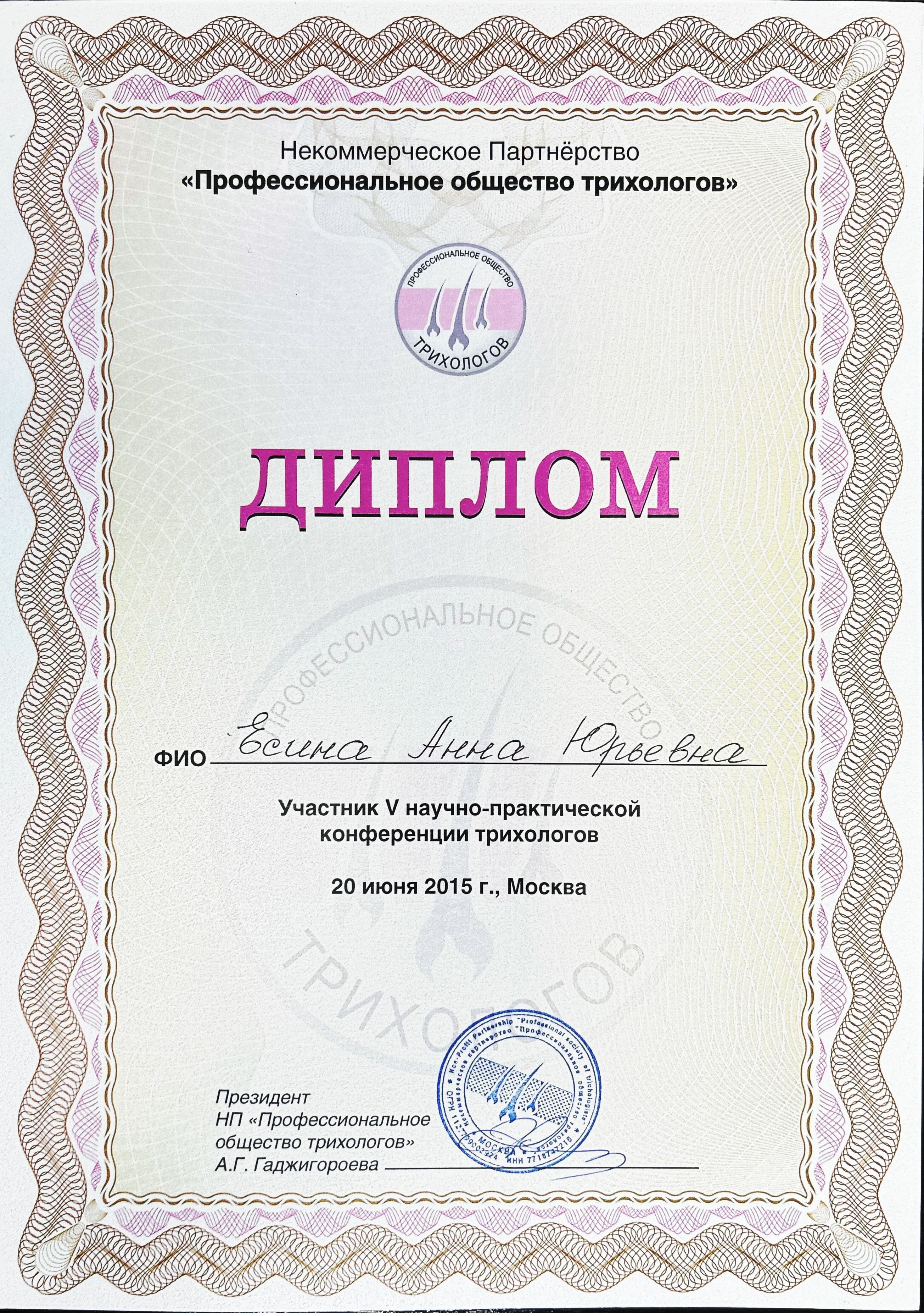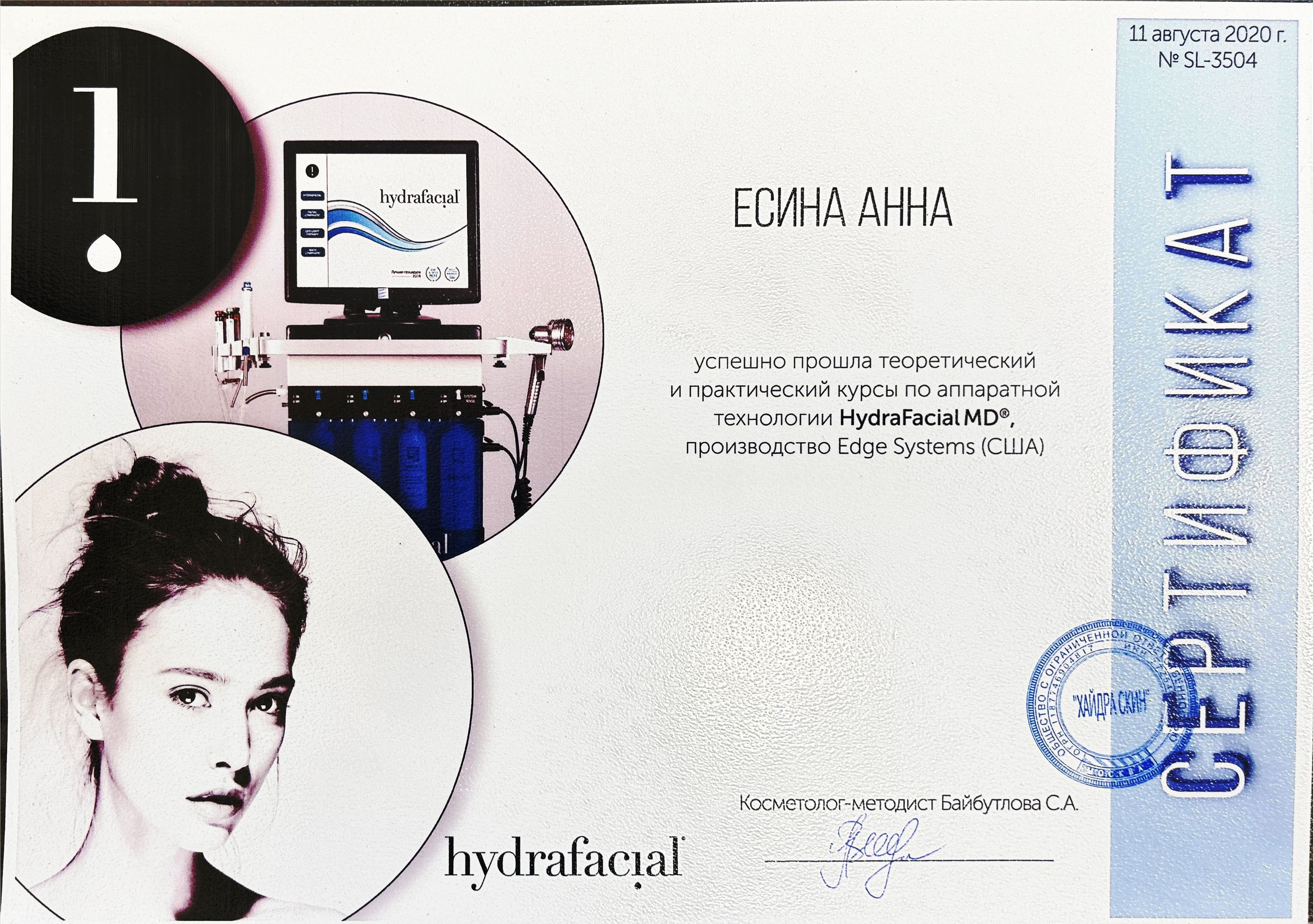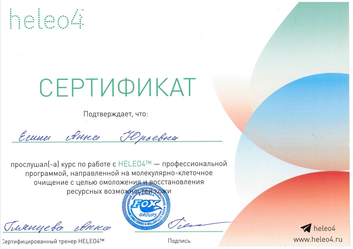 Сертификат специалиста-дерматовенеролога , косметолога продлено в 2010 году (действителен до 2020 года)