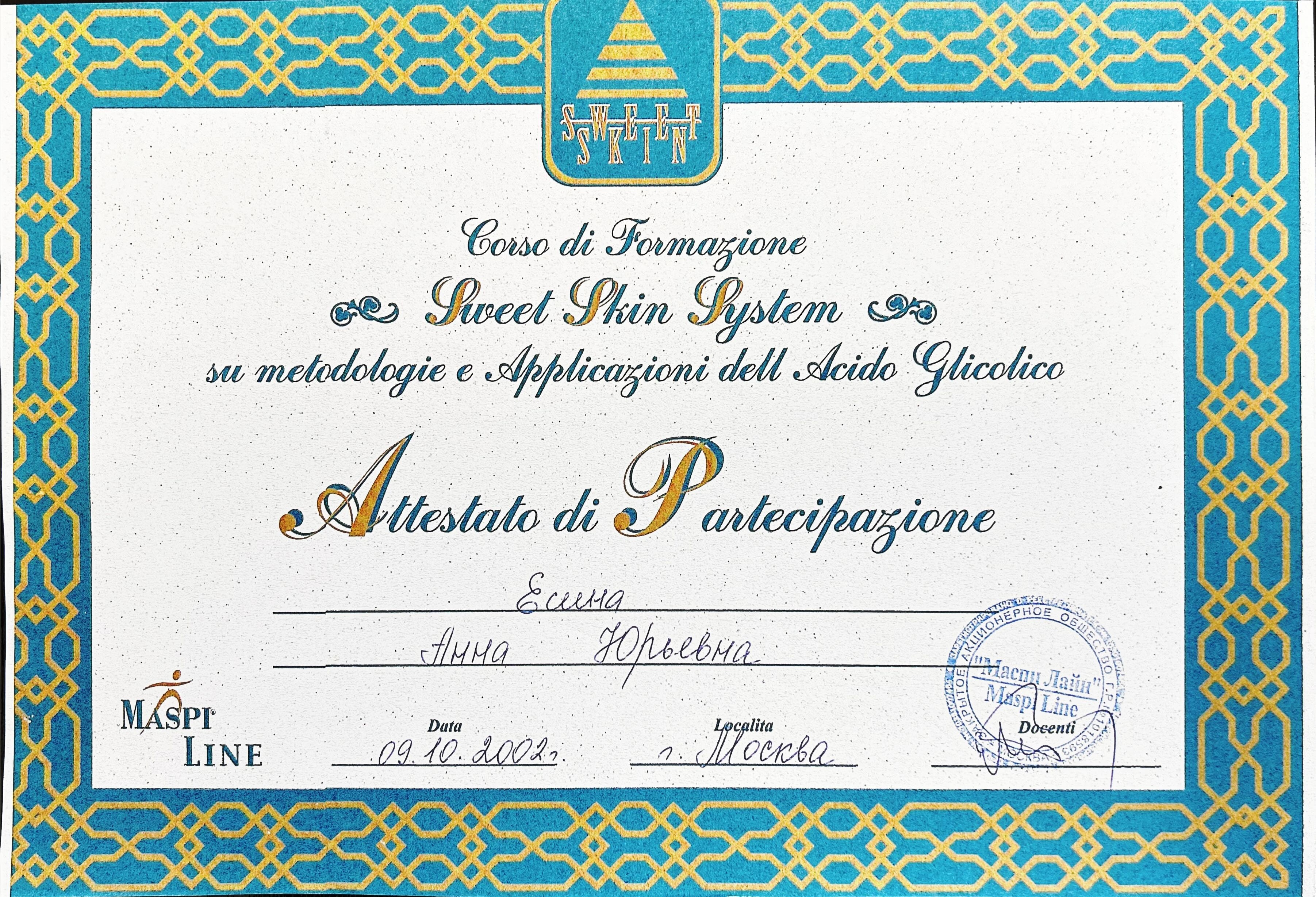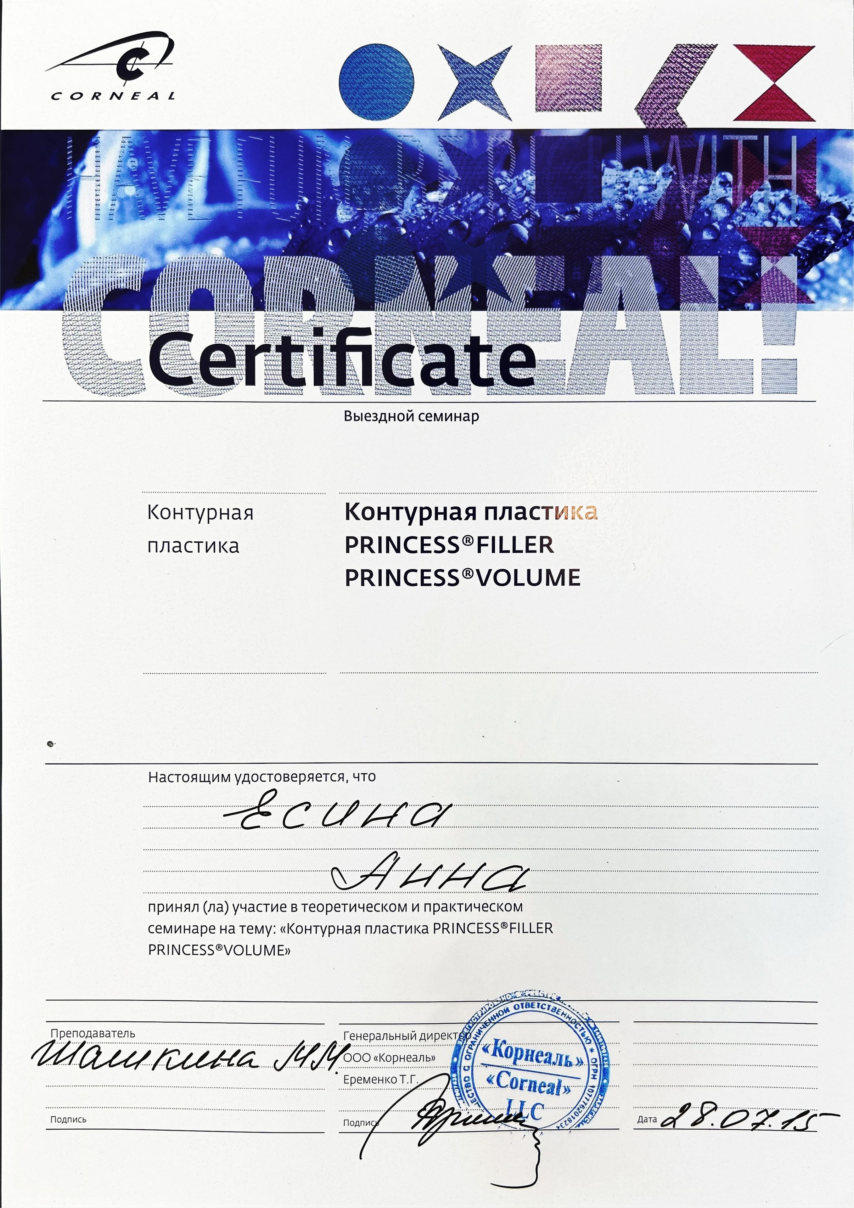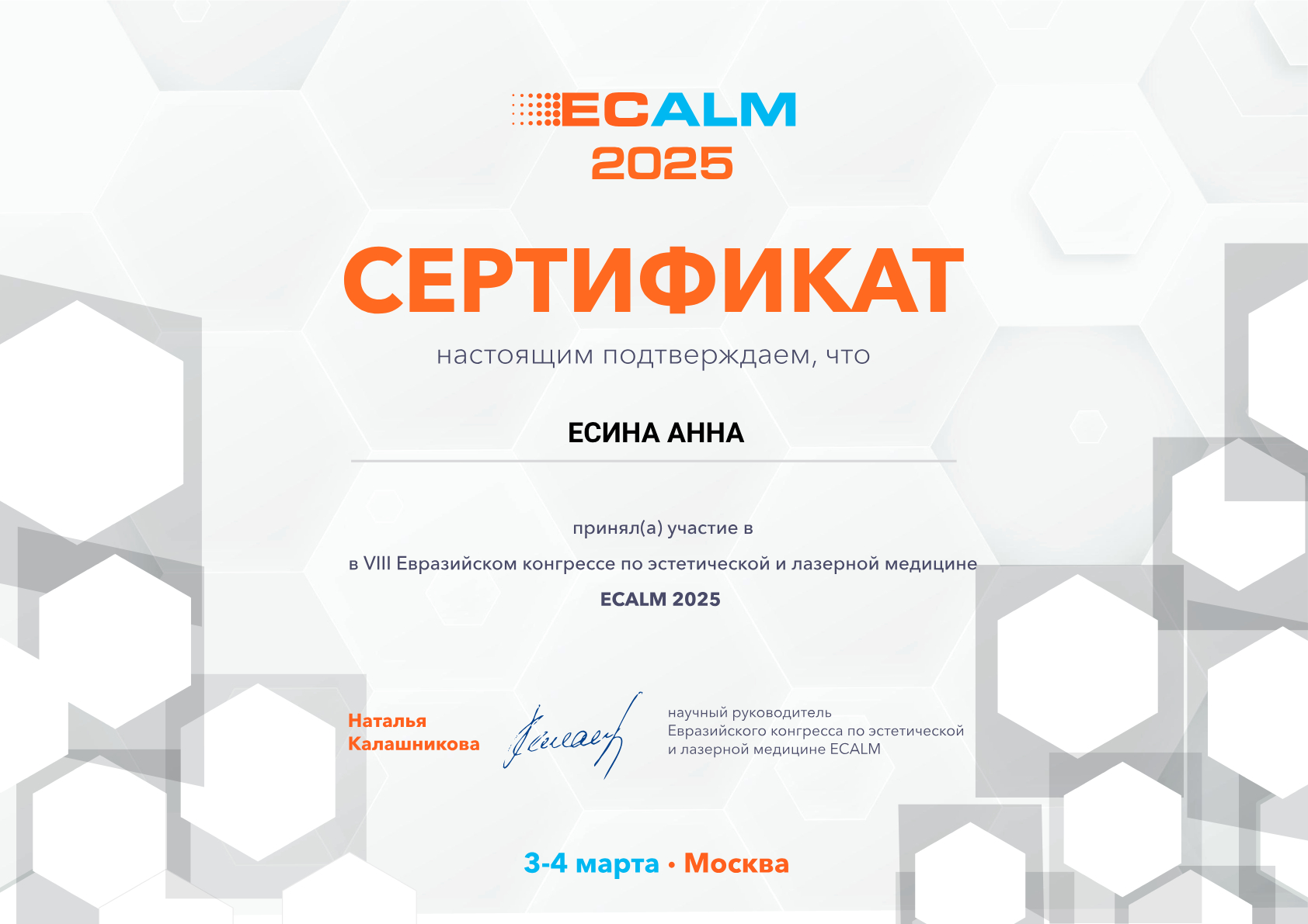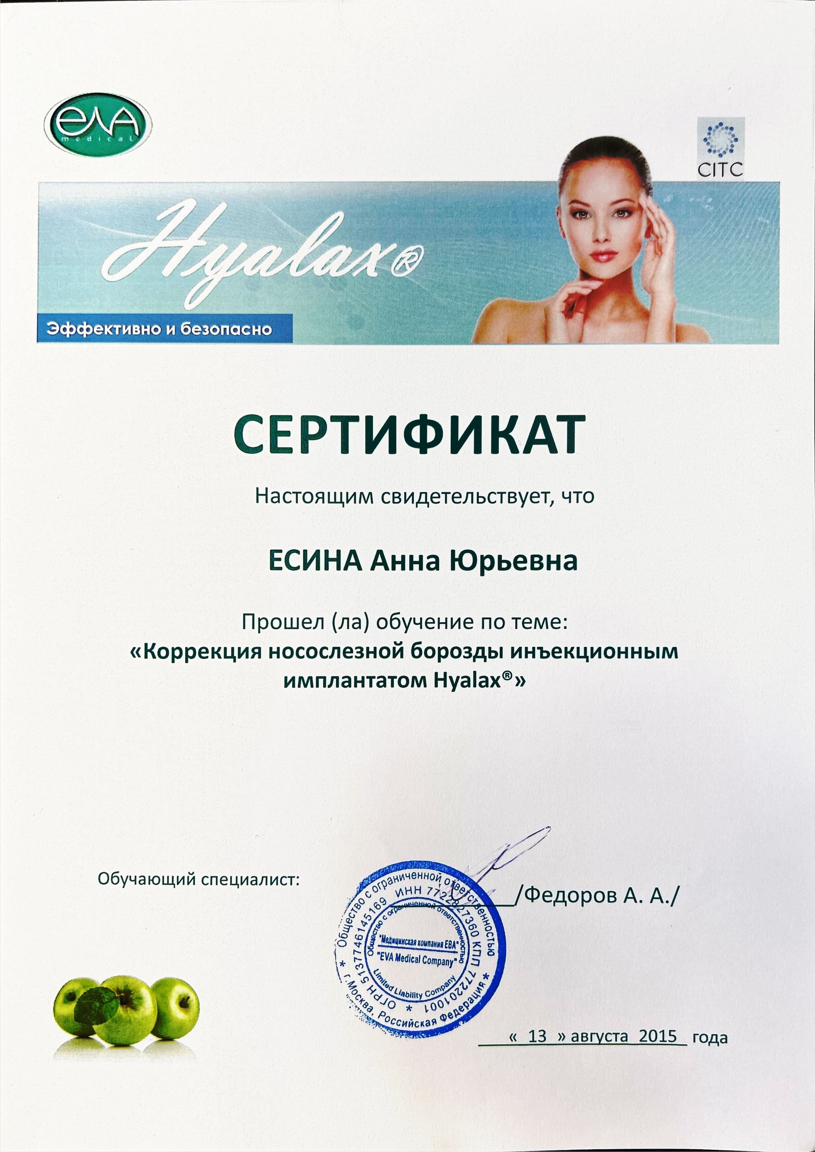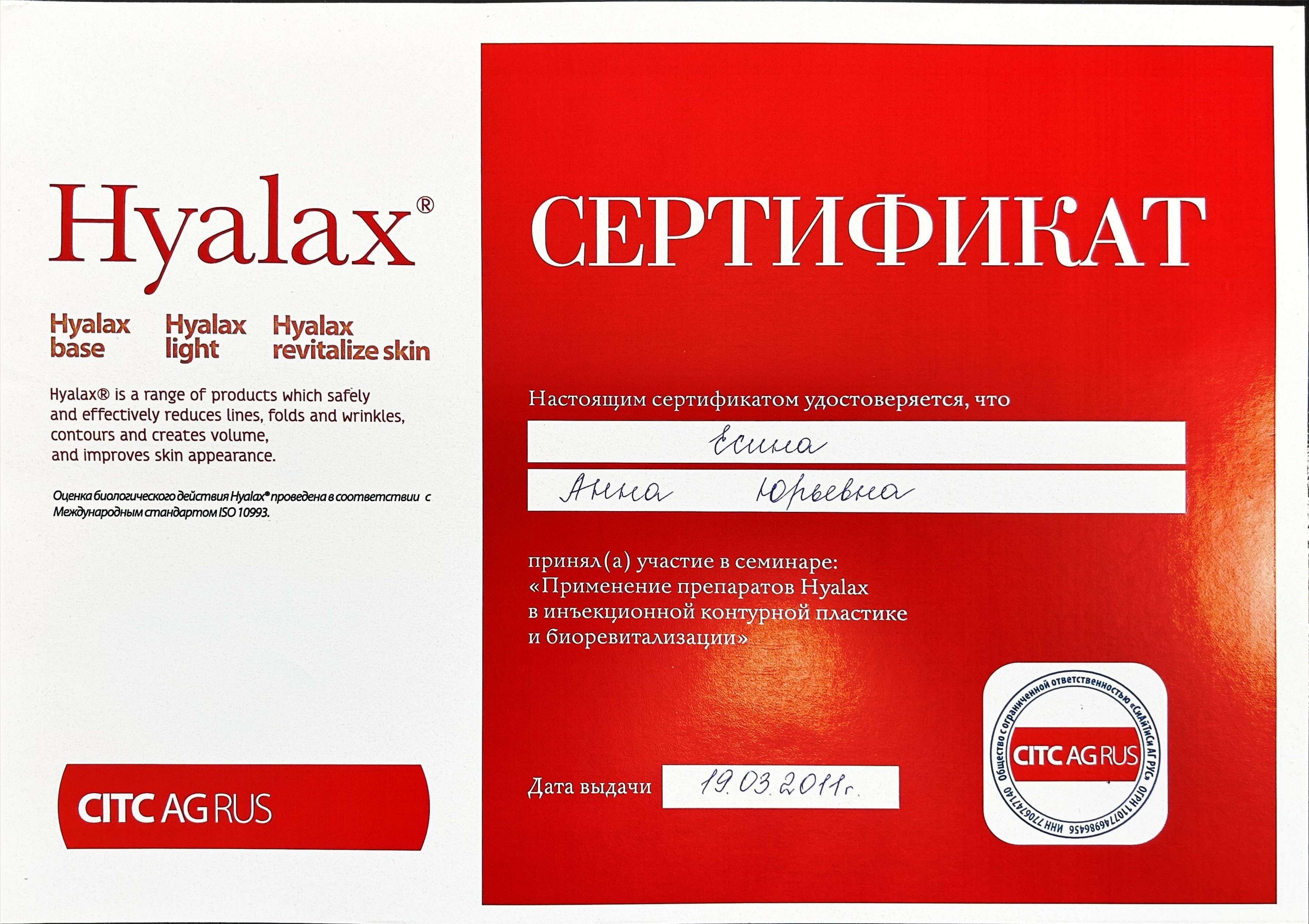 Сертификат специалиста-дерматовенеролога , косметолога продлено в 2010 году (действителен до 2020 года)