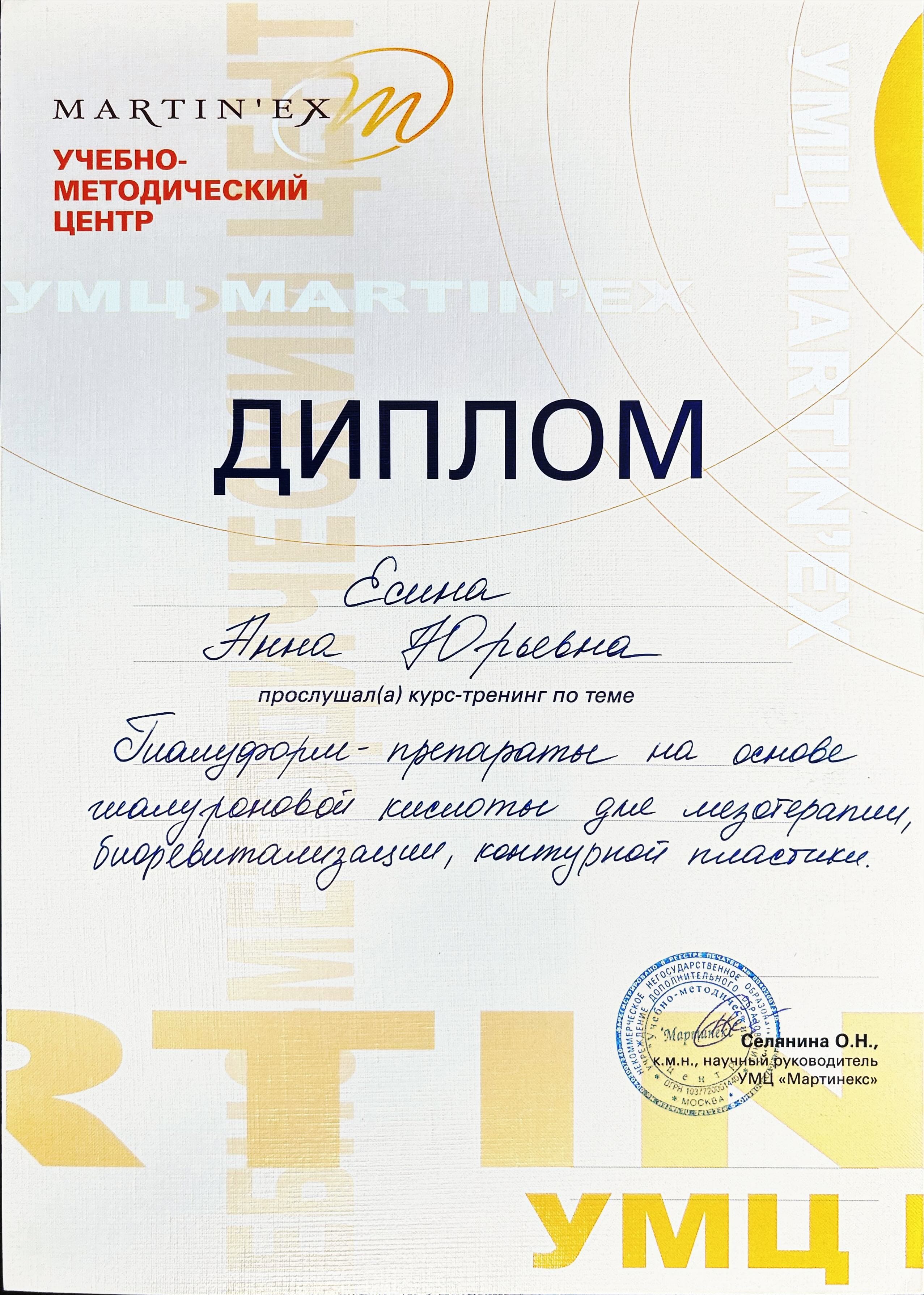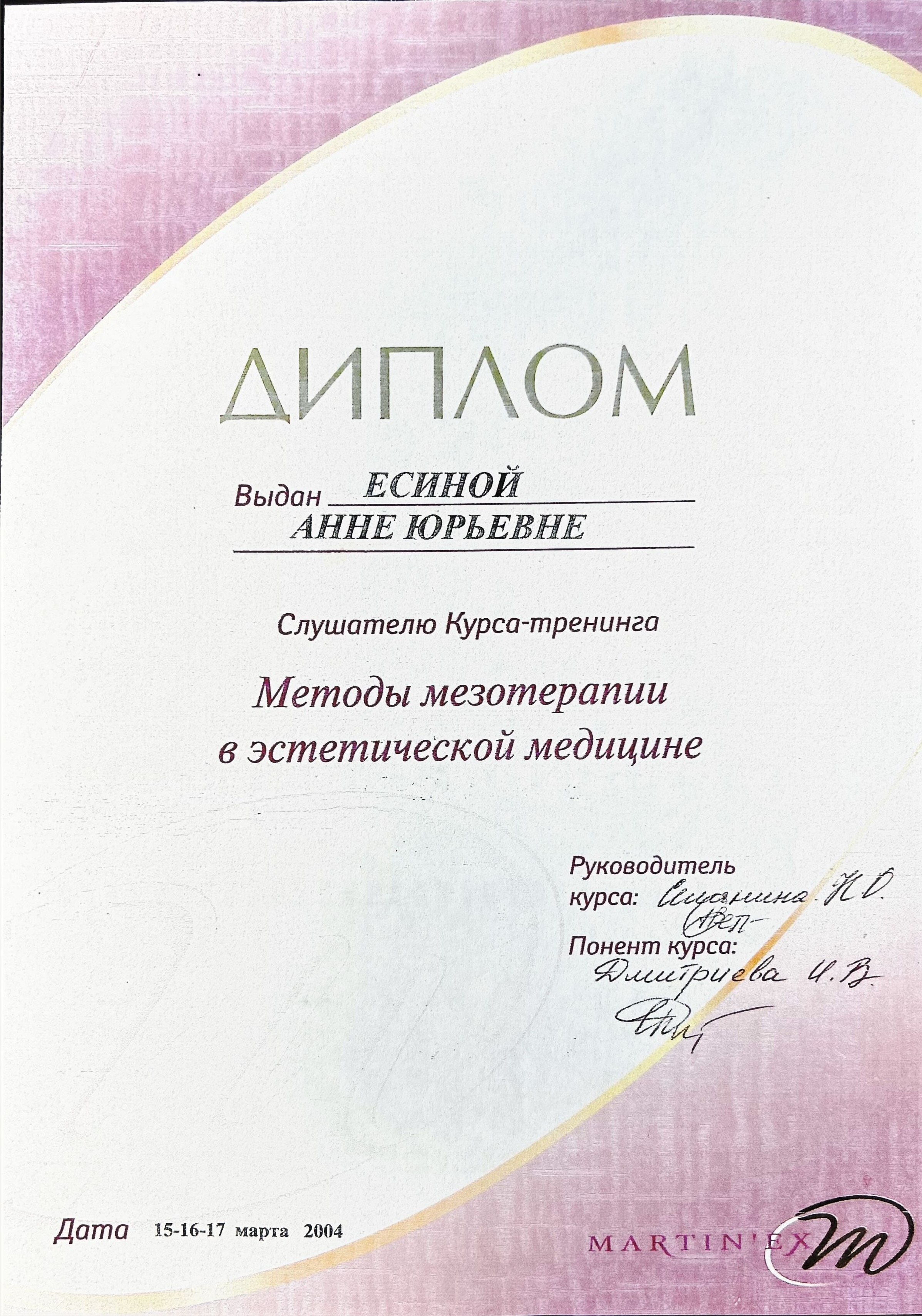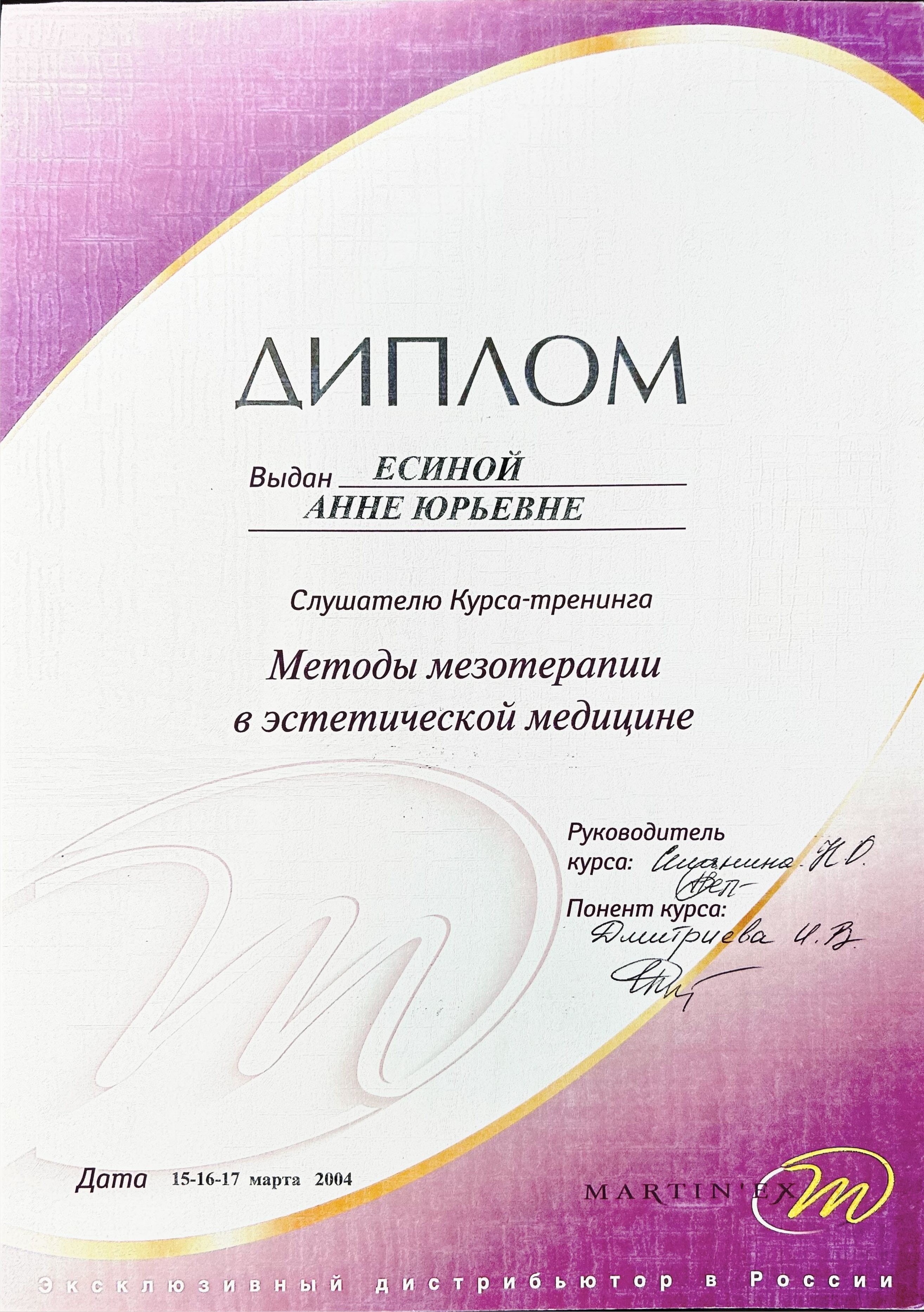 Сертификат по мезотерапии. Учебно-методический центр «Мартинекс»