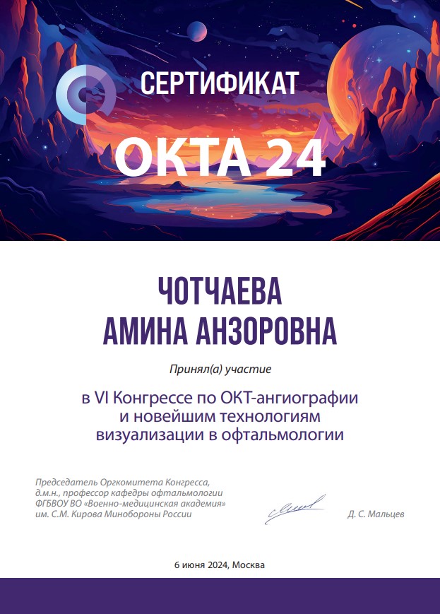 Выражаю огромную благодарность доктору Чотчаевой А. А. за оказанную мне пред операционную консультацию. Мне с моим недугом пришлось обращаться и к другим офтальмологам, но доктор Чотчаева А. А. лучшая. Читать далее