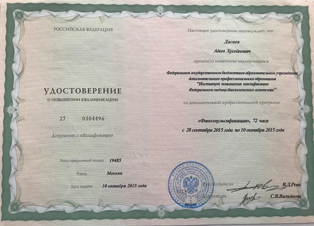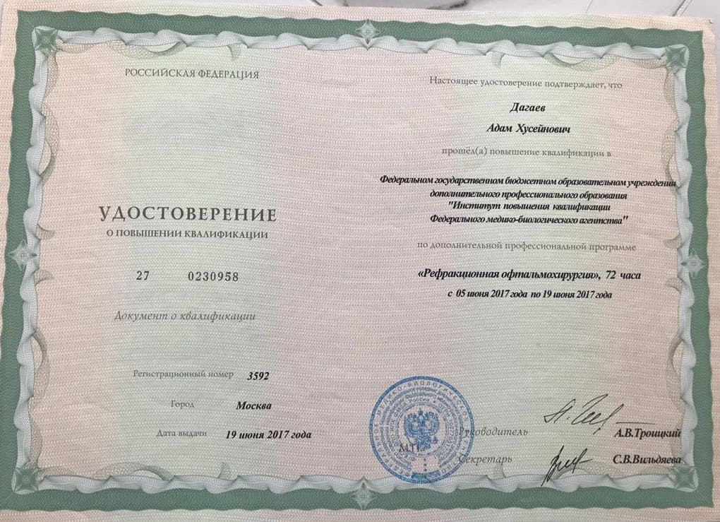 Адам Хусейнович замечательный, неравнодушный человек, отличный врач и превосходный хирург-офтальмолог. Доходчиво и ясно всё обьясняет и дает полезные советы.
