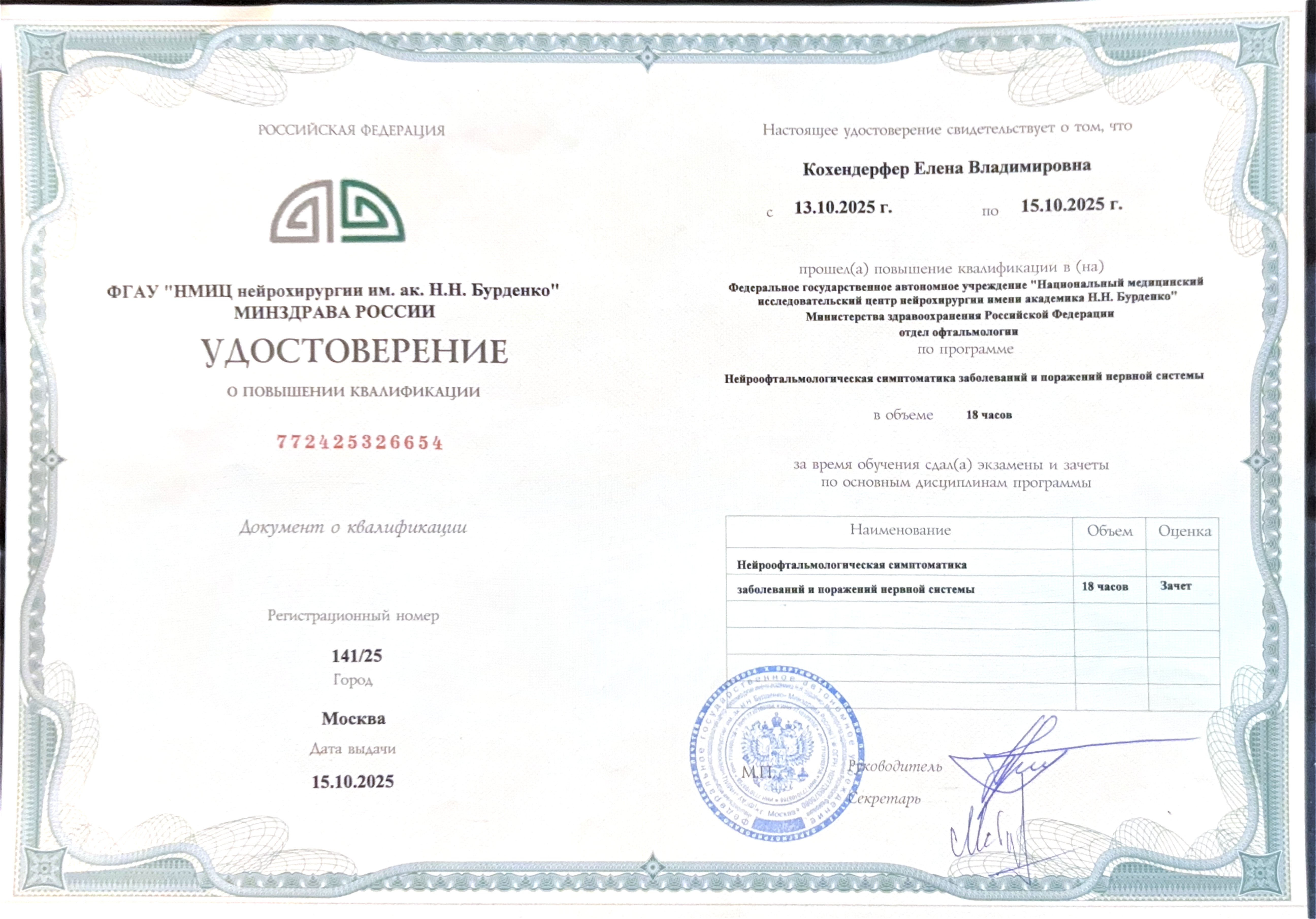 НМИЦ нейрохирургии имени академика Н. Н. Бурденко МЗ РФ. Нейроофтальмологическая симптоматика заболеваний и поражений нервной системы.