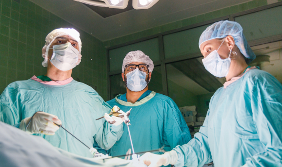 Врач выполняет операцию через хирургический разрез. Пациенту необходима госпитализация на несколько дней.