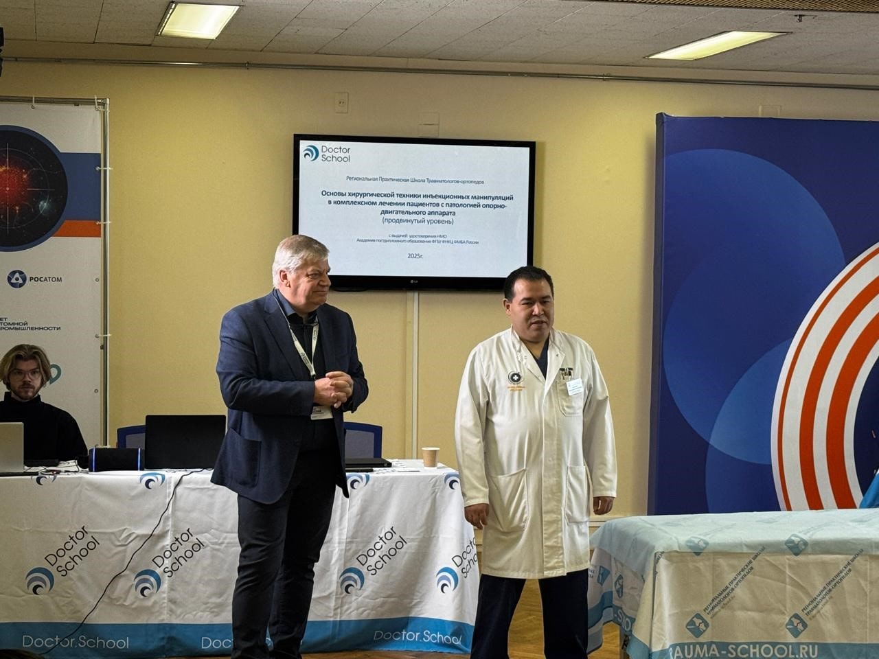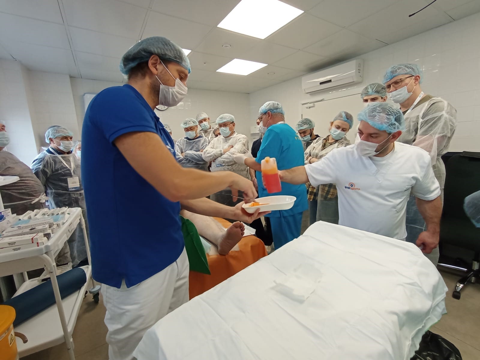 Руководитель Центра реабилитации, заведующий травматолого-ортопедическим отделением 2, врач – травматолог-ортопед, врач физической и реабилитационной медицины Муханов Виктор Викторович провёл в процедурном кабинете мастер-класс на тему «Разные варианты ММКП с последующим клиническим использованием с дополнительными сложными суставными, внесуставными и внутрикостными доступами под контролем УЗИ и рентгена на пациенте».