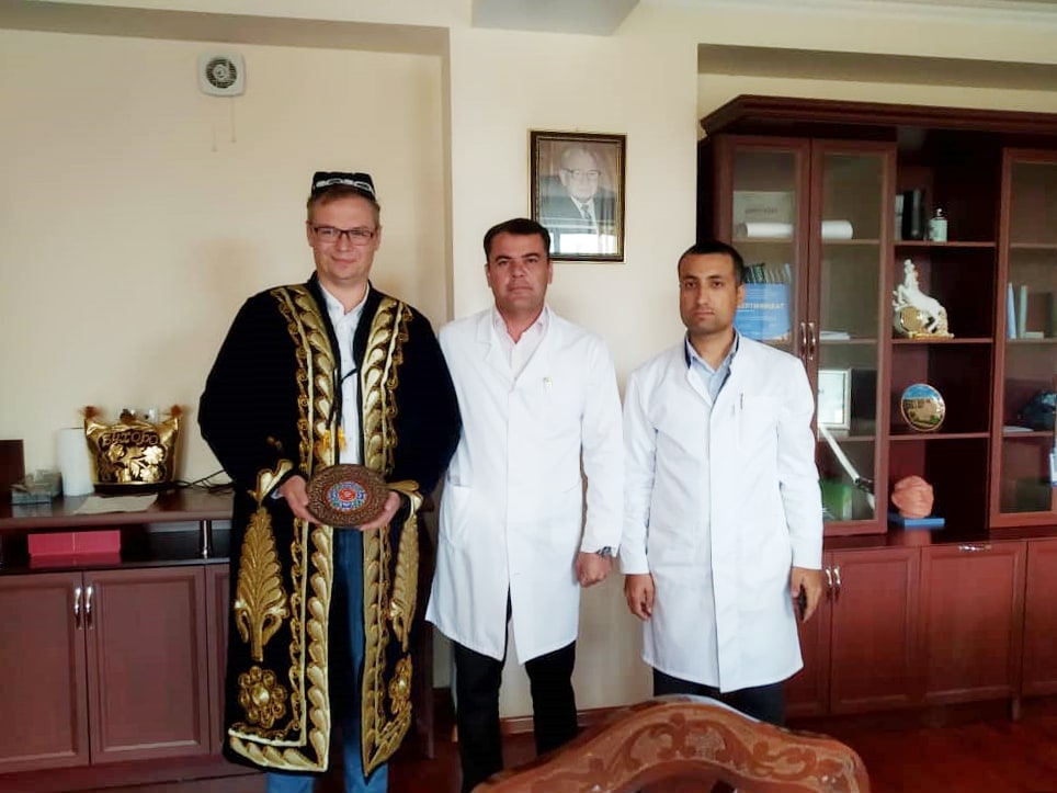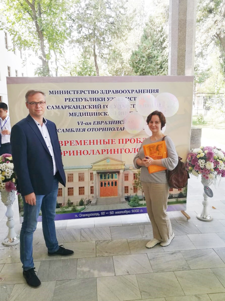 26 сентября в рамках посещения республики Узбекистан была проведена рабочая встреча с директором Самаркандского РСНПМИОиР (Онкологического диспансера г. Самарканда) профессором Джураевым М.Д. и врачами онкохирургического отделения. На базе 2х частных клиник проведено более 30 консультаций пациентов с различной патологией головы и шеи. 27-28 сентября в г. Самарканде совместно с и.о. заведующей отделением Оториноларингологии ФНКЦ ФМБА России Масловой Ириной Викторовной приняли участие в работе VI-ой Евразийской Ассамблеи оториноларингологов с международным участием.