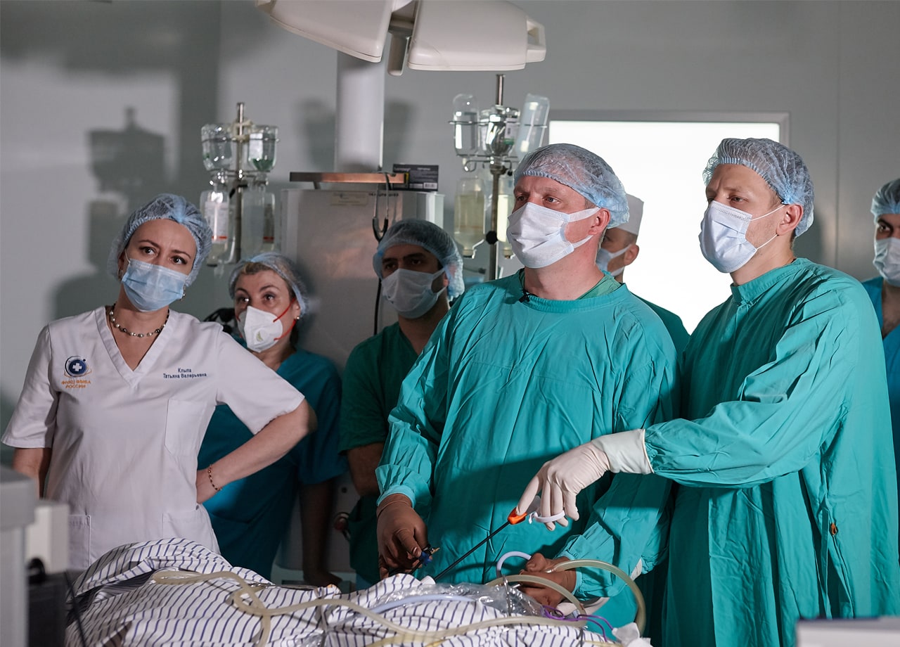В ходе научно-практического мероприятия, сотрудники урологического отделения ФНКЦ ФМБА России совместно с анестезиологами-реаниматологами выполнили серию показательных операций в рамках ВМП по профилям: урология, хирургия, онкология.