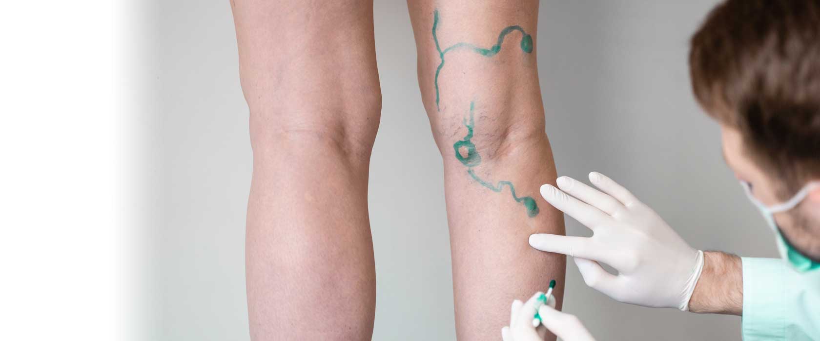 Утром перед операцией необходимо принять душ и полностью обрить ногу, на которой будет выполняться хирургическое вмешательство. Затем оперирующий хирург под ультразвуковым контролем производит специальную разметку, что позволяет не упустить из вида патологически измененные вены, иногда не видимые при обычном внешнем осмотре.