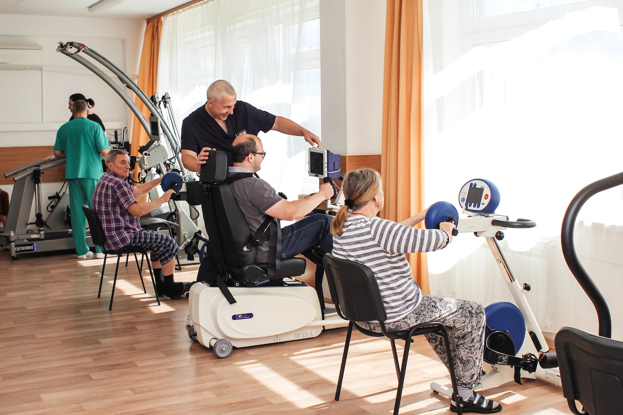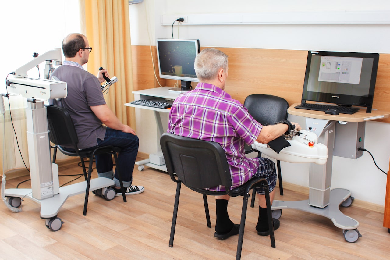 - Врачи ежедневно работают с пациентом, используя подходящие современные методы лечения : индивидуальную или групповую кинезиотерапию (ЛФК), массаж, различные виды физиотерапии, в том числе электронейростимуляцию и миостимуляцию, занятия на тренажерах с обратной биологической связью, аппаратах восстановления мелкой моторики кисти и движения нижних конечностей, логопедические занятия, консультации психотерапевта, нейропсихолога (при необходимости), а также другие мероприятия.