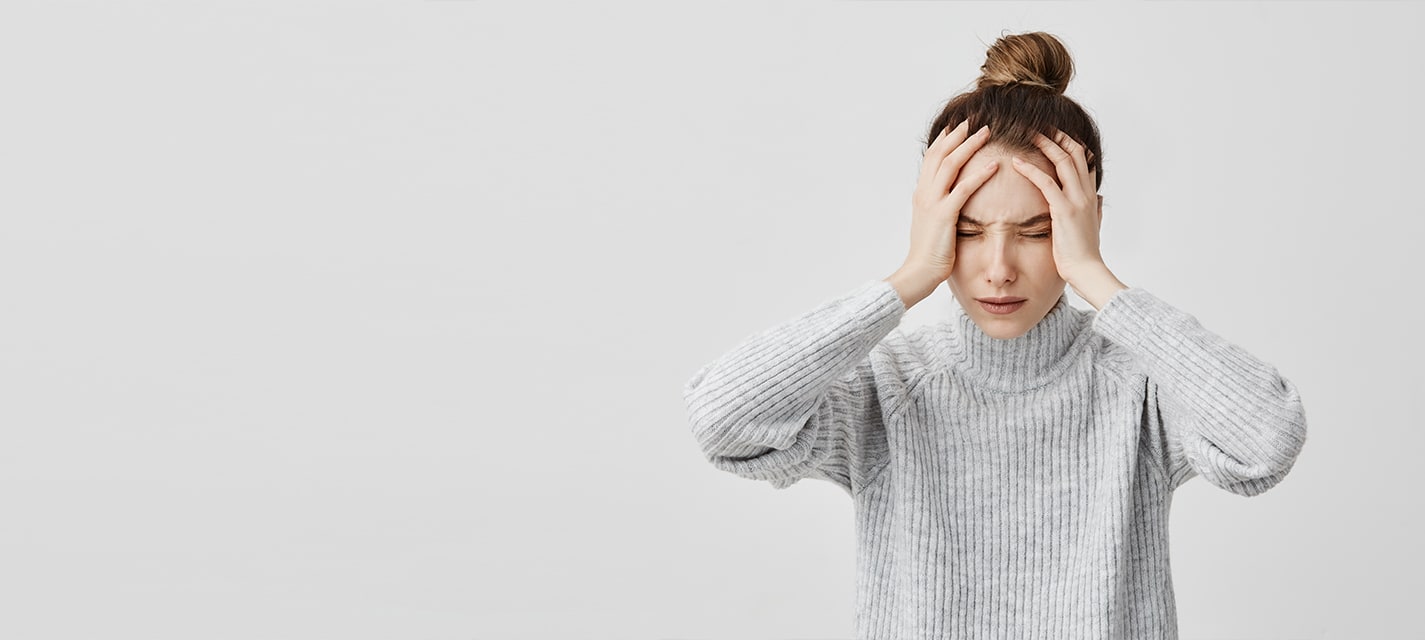 Для мигрени характерны пульсирующие, давящие, изнуряющие, как правило, односторонние головные боли. Боль может локализоваться вокруг глаз, в височной области и области лба. Зачастую приступу мигрени предшествует так называемая аура — это зрительные, звуковые, осязательные симптомы, которые проявляются в виде молний, вспышек, покалывания, онемения.