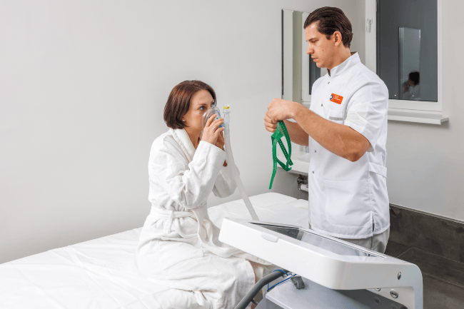 В ФНКЦ ФМБА России процедура дыхательной терапии Окситтера проводится с использованием современного сертифицированного оборудования. Мы обеспечиваем безопасность и эффективность за счёт строгого соблюдения медицинских протоколов. Наши специалисты подбирают оптимальные параметры сеансов, учитывая диагноз, состояние пациента.