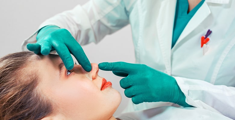 - Медицинский осмотр. Далее хирург выполняет осмотр, оценивает внутреннюю и внешнюю часть носа, состояние носовой перегородки, проверяет сохранность носового дыхания, определяет, какие изменения необходимы.