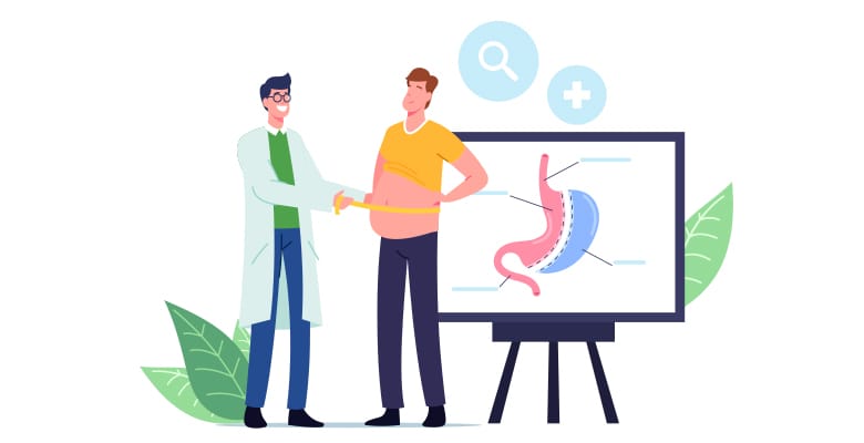 - при ИМТ от 35 кг/м2 если у пациента имеется сахарный диабет, гипертоническая болезнь, ночное апноэ, нарушения липидного обмена;