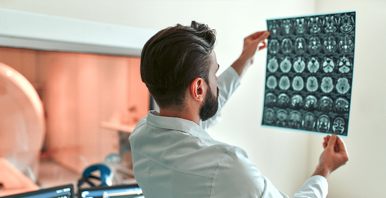 - КТ или МРТ головного мозга позволяет оценить локализацию и размеры опухоли;