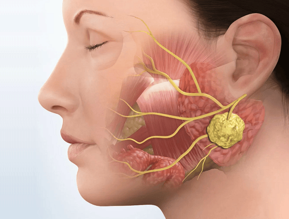 Увеличенная в размерах слюнная железа может воздействовать на лицевой нерв и нарушать его функциональную активность. Поражение лицевого нерва сопровождается нарушением работы мимической мускулатуры на стороне опухоли. С ростом опухоли могут возникать нарушение слуха, затруднение глотания и жевания.