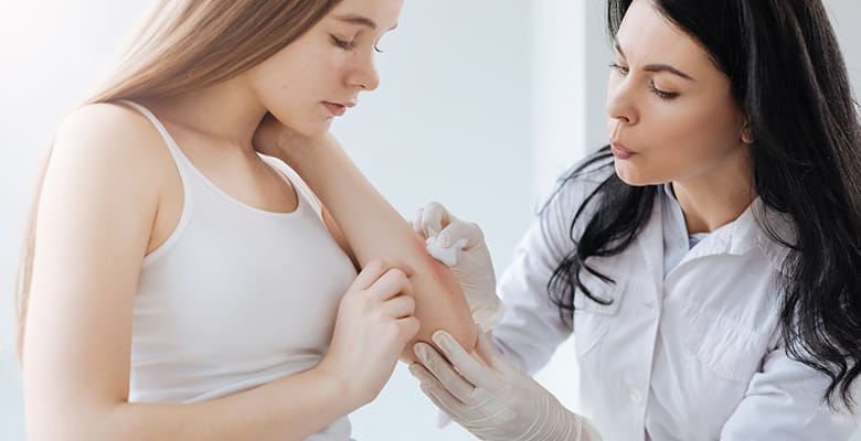 Аллергические поражения кожи — это группа заболеваний, имеющих генетическую основу, возникновение которых стимулируется воздействием аллергенов.