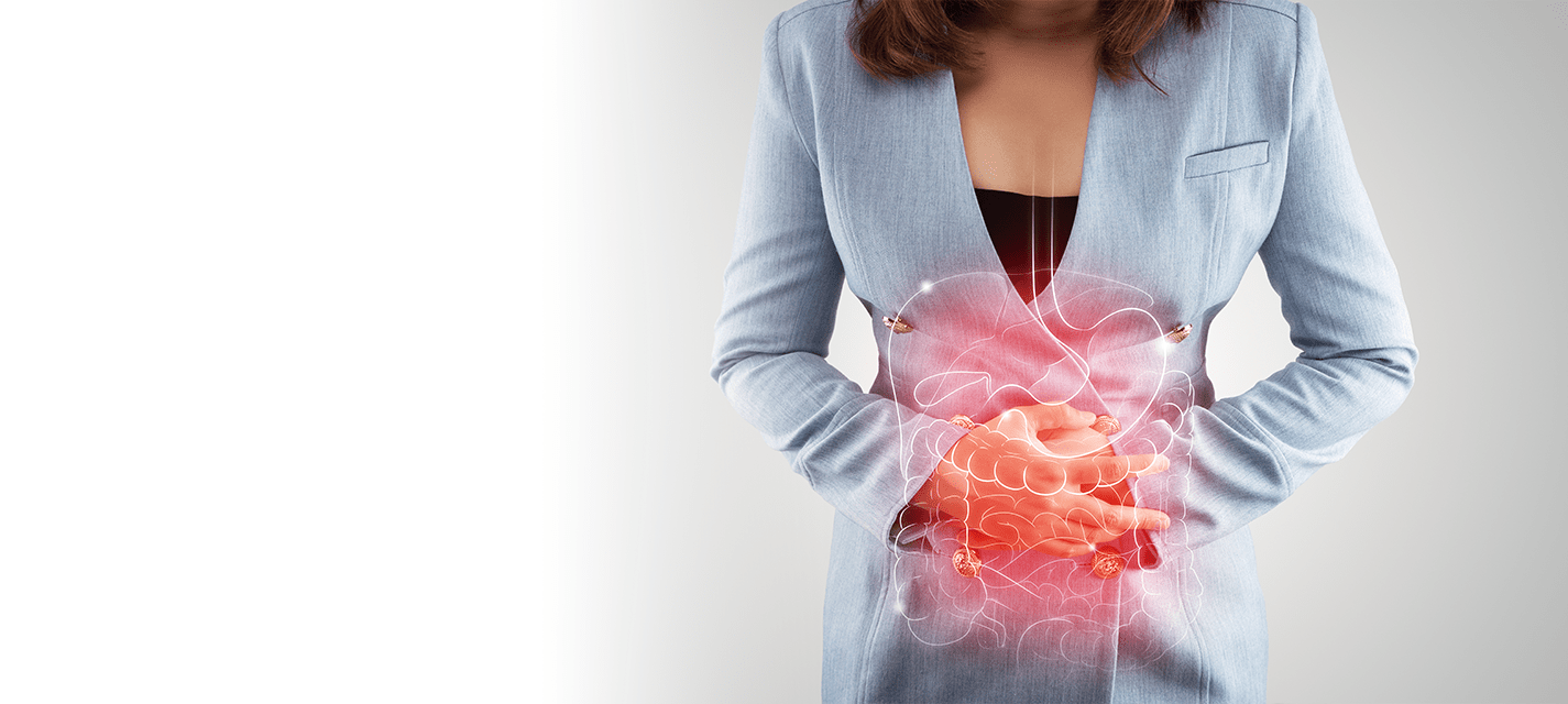 Кишечный синдром. Пациент жалуется на боли в животе, постоянные или связанные со спазмами, возникающими преимущественно после еды. Другим распространённым симптомом является диарея — учащённый стул, жидкий либо мягкий, неоформленный. Диарея держится стойко, обычно не менее 6 недель. В кале может присутствовать примесь крови, слизи.