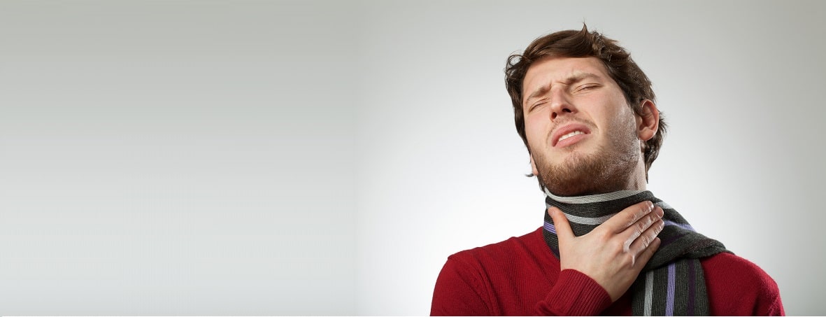 Хронический фарингит имеет менее ярко выраженную клиническую картину. Симптомы зависят от степени и глубины поражения гортани. Пациент жалуется на сухость, дискомфорт в горле, ощущение першения, боль при глотании.