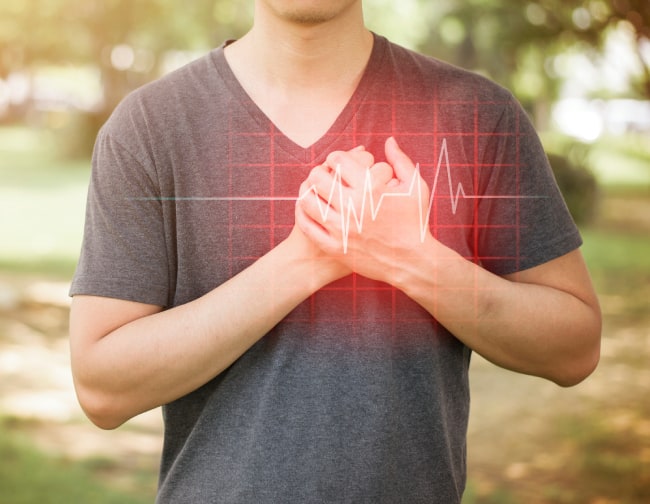 - Сердцебиения, перебои в работе сердца (аритмии): например, фибрилляция предсердий, желудочковая тахикардия.
