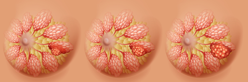 Рак груди развивается из эпителиальных клеток молочной железы. Под воздействием комплекса факторов они перерождаются и приобретают черты злокачественности. Опухоль начинает активно делиться и разрастаться, захватывая соседние ткани. Неоплазии молочной железы довольно агрессивны, рак может быстро дать метастазы, распространяясь по лимфатическим и кровеносным путям. Поэтому так важно выявить и начать лечить опухоль на ранней стадии. Значимое достижение в борьбе со злокачественными новообразованиями груди — разработка и внедрение скрининговых программ, позволяющих обнаруживать болезнь на начальных этапах. Не менее важно самообследование, которое каждая женщина может регулярно выполнять в домашних условиях.