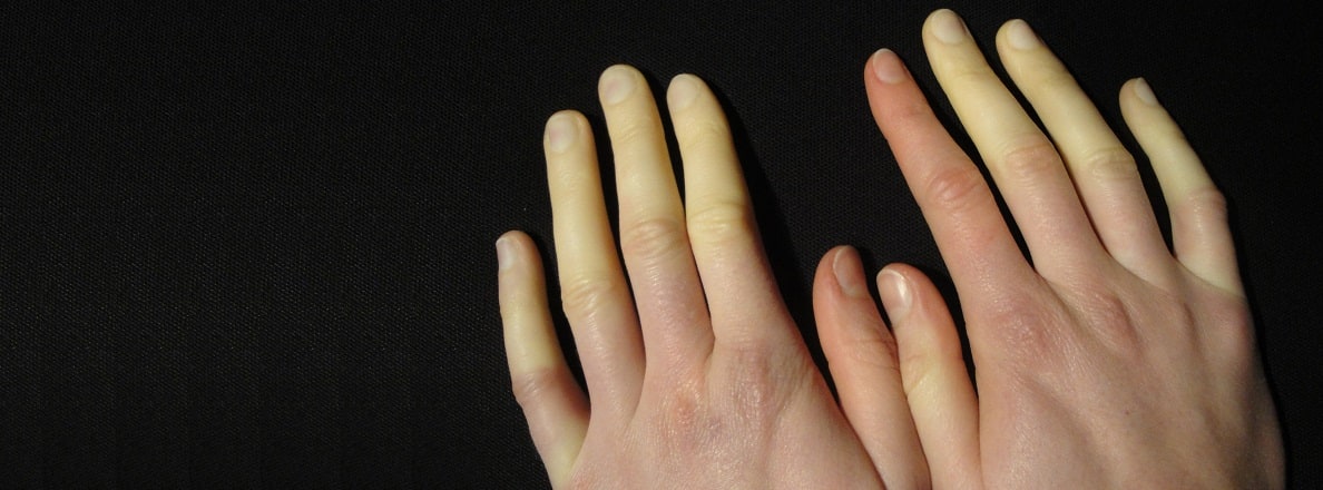 - Бледность, похолодание кожи пальцев рук, ног, губ, носа и ушей. Кожа приобретает бледный оттенок в момент выраженного сужения сосудов в ответ на провоцирующий фактор;
